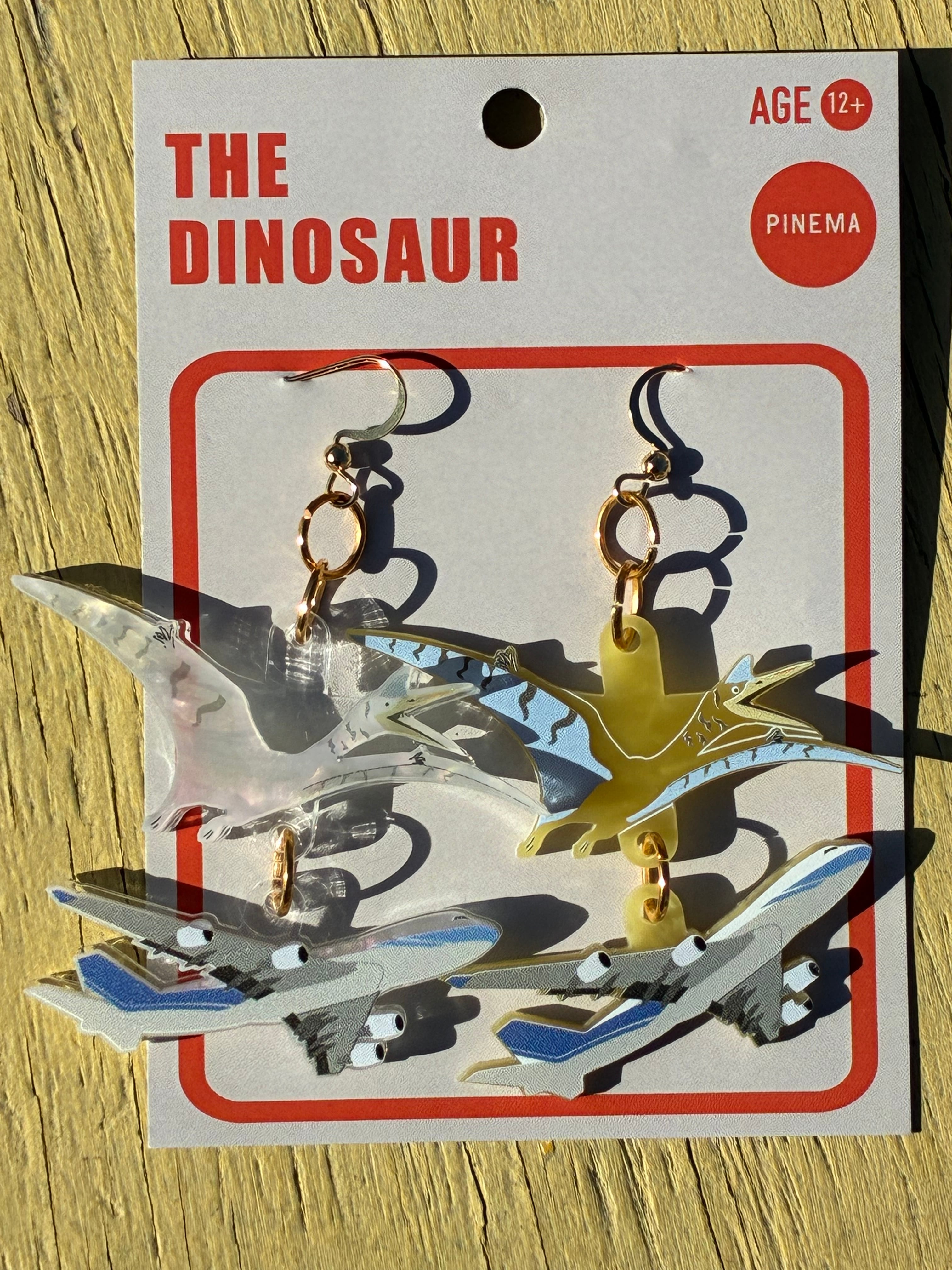 巨大翼竜ケツァルコアトルスが飛行機を襲撃している緊迫のシーンをピアスにしました
