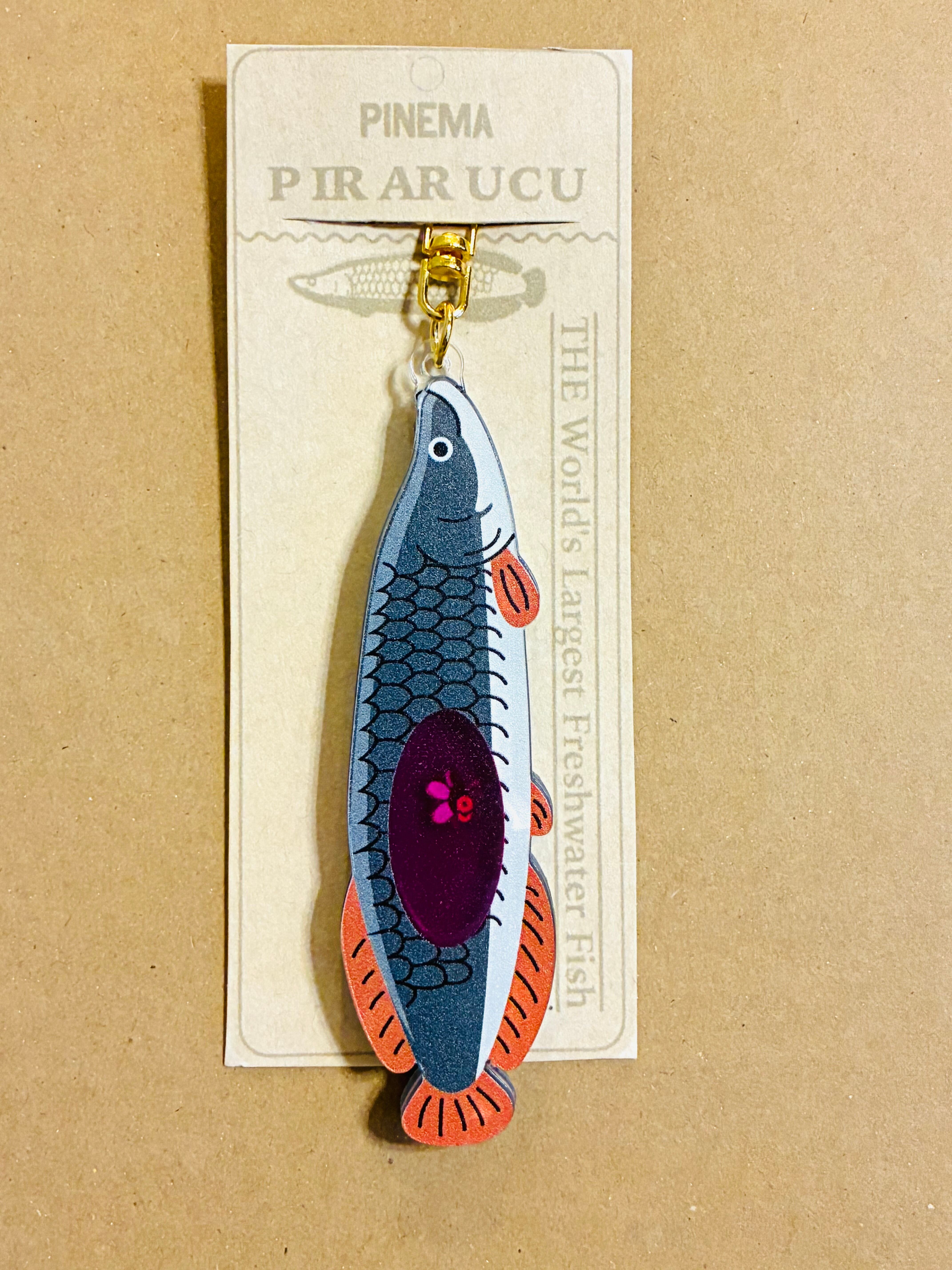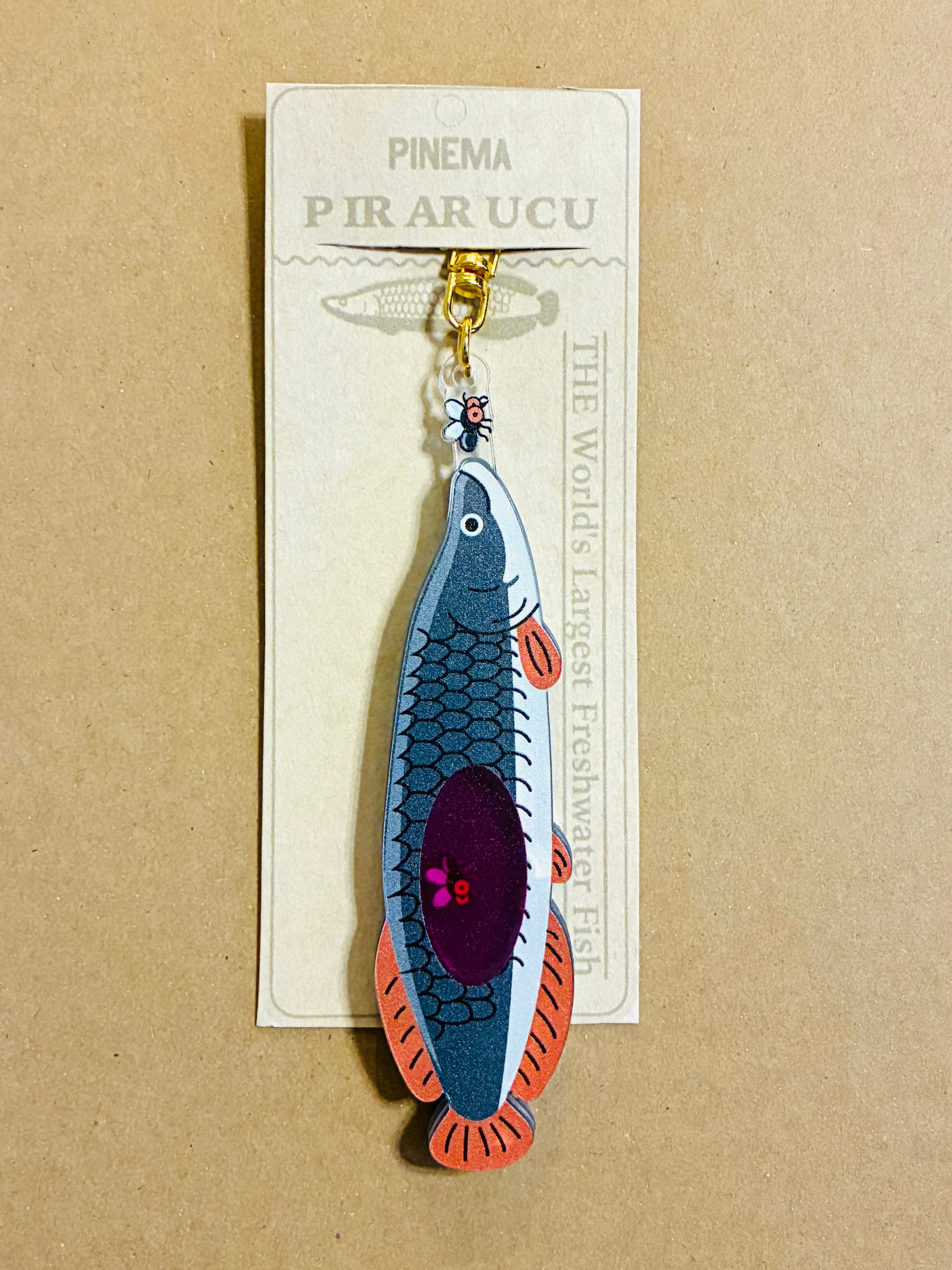世界最大の淡水魚、ピラルクがハエをハンティングするシーンをモチーフにしたキーリング。