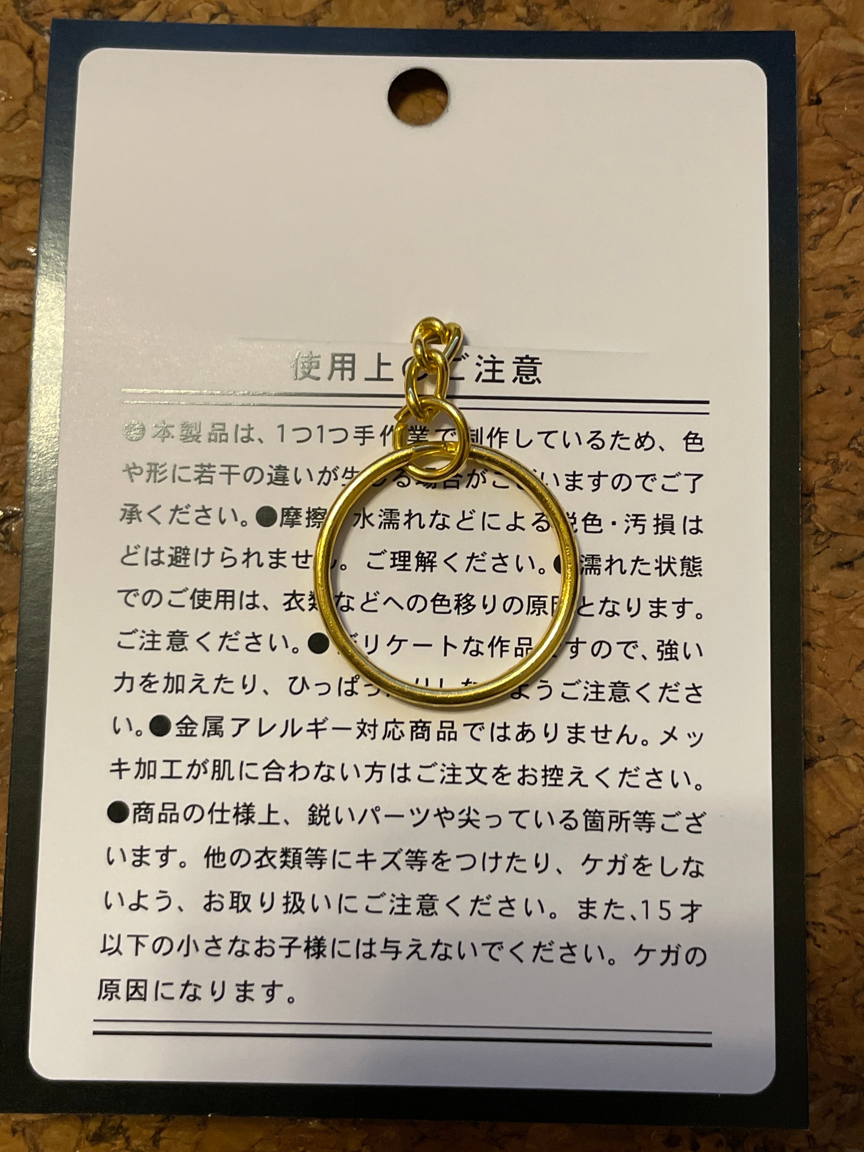 本製品は、1つ1つ手作業で制作しているため、色や形に若干の違いが生じる場合がございますのでご了承ください。摩擦・水濡れなどによる脱色・汚損はどは避けられません。ご理解ください。濡れた状態でのご使用は、衣類などへの色移りの原因となります。ご注意ください。デリケートな作品ですので、強い力を加えたり、ひっぱったりしないようご注意ください。金属アレルギー対応商品ではありません。メッキ加工が肌に合わない方はご注文をお控えください。商品の仕様上、鋭いパーツや尖っている箇所等ございます。他の衣類等にキズなどつけたり、ケガをしないよう、お取り扱いにご注意ください。また、15際以下の小さなお子様には与えないでください。ケガの原因になります。あなたの心に刺さりすぎ注意。